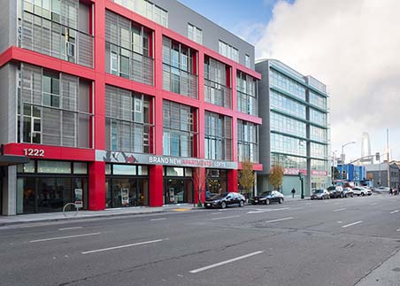 L Seven Apartments and Lofts is an entire city block of 410 rental apartments, commercial, retail, and office space, plus an underground parking for 334 cars and 415 bicycles in San Francisco's SoMa district. Located on 3.5 acre site, the development consists of eight buildings along four streets with internal alleyways for vehicular circulation through the site.
